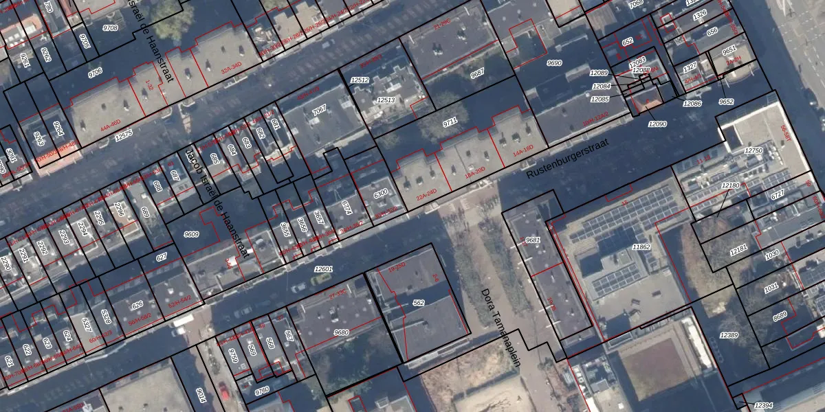 Rustenburgerstraat 24-B is gelegen op kadastraal perceel ASD18V9711. Deze kadastrale aanduiding is uniek en wordt gebruikt door het Kadaster om eigendomsrechten en andere zakelijke rechten vast te leggen. Het perceel maakt onderdeel uit van de kadastrale gemeente Amsterdam.