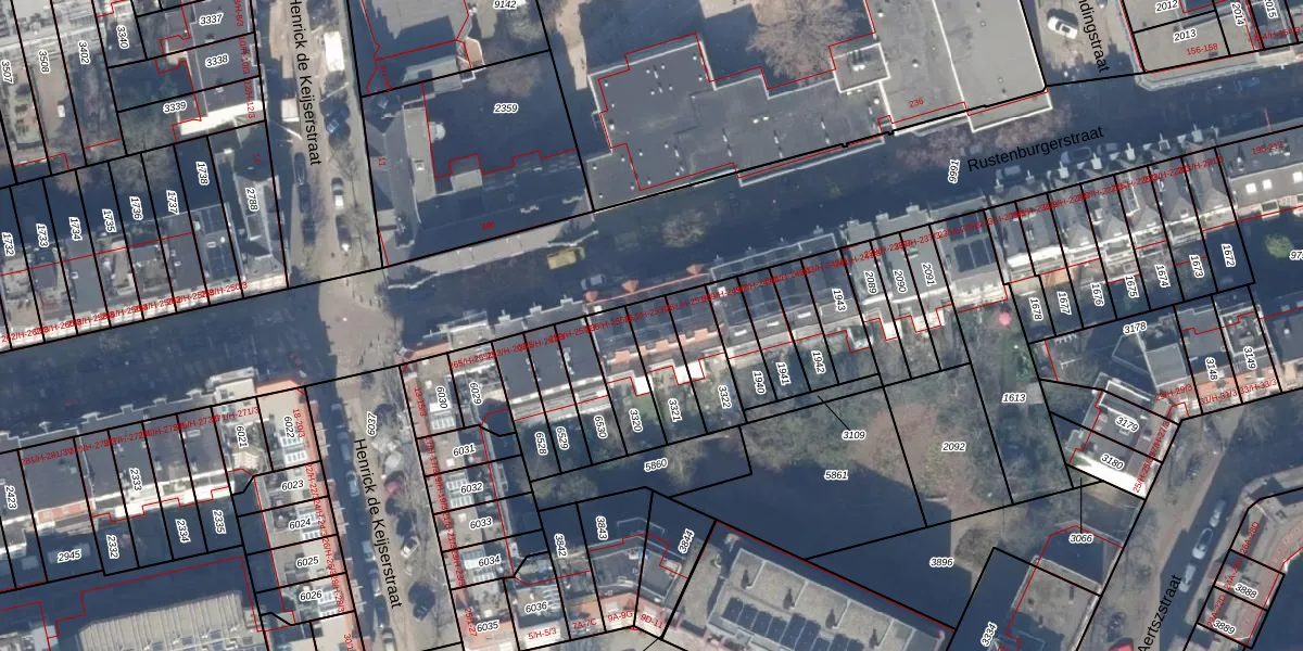 Rustenburgerstraat 253-2 is gelegen op kadastraal perceel ASD18V3321. Deze kadastrale aanduiding is uniek en wordt gebruikt door het Kadaster om eigendomsrechten en andere zakelijke rechten vast te leggen. Het perceel maakt onderdeel uit van de kadastrale gemeente Amsterdam.
