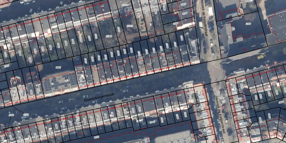 Rustenburgerstraat 262-3 is gelegen op kadastraal perceel ASD18V1732. Deze kadastrale aanduiding is uniek en wordt gebruikt door het Kadaster om eigendomsrechten en andere zakelijke rechten vast te leggen. Het perceel maakt onderdeel uit van de kadastrale gemeente Amsterdam.