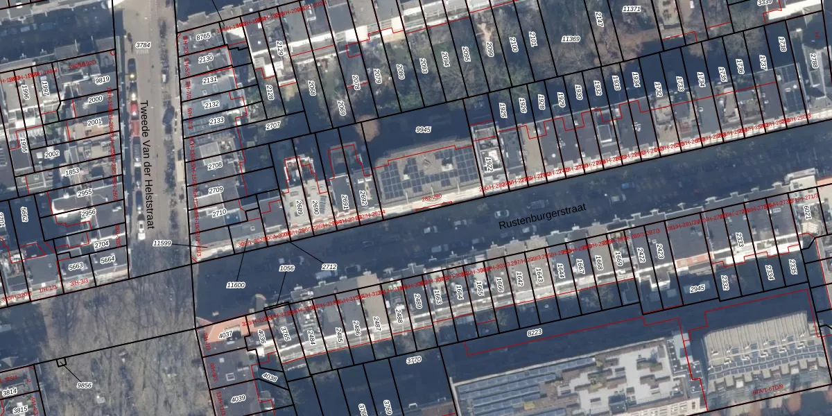 Rustenburgerstraat 288-A is gelegen op kadastraal perceel ASD18V9945. Deze kadastrale aanduiding is uniek en wordt gebruikt door het Kadaster om eigendomsrechten en andere zakelijke rechten vast te leggen. Het perceel maakt onderdeel uit van de kadastrale gemeente Amsterdam.