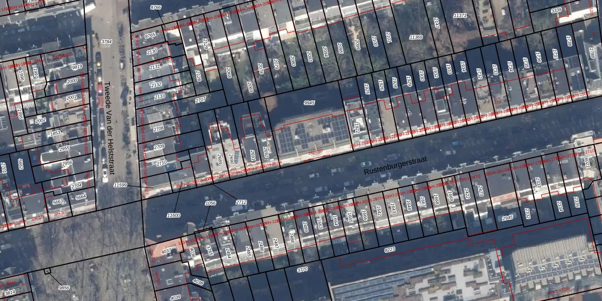 Het perceel waarop Rustenburgerstraat 288-C staat heeft een oppervlakte van 606 m². Dit is een groot perceel. De perceeloppervlakte wordt geregistreerd door het Kadaster. Gedetailleerde informatie over de maten van dit perceel kunt u vinden in het rapport Kadastrale kaart met maatvoering van Rustenburgerstraat 288-C.
