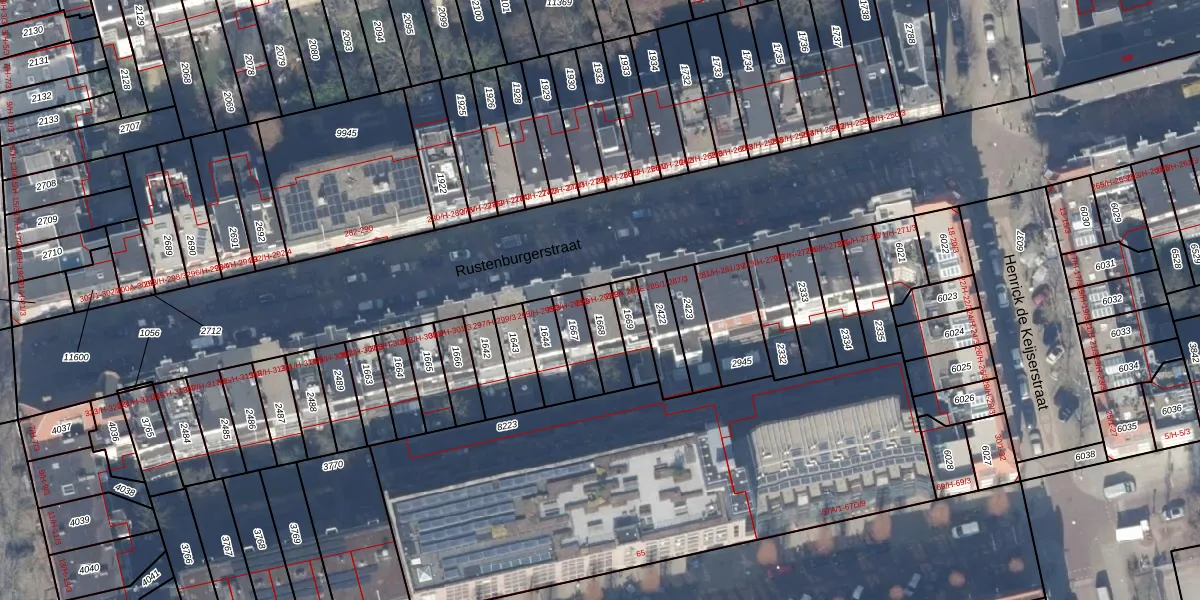 Het perceel waarop Rustenburgerstraat 291-H staat heeft een oppervlakte van 90 m². Dit is een klein perceel. De perceeloppervlakte wordt geregistreerd door het Kadaster. Gedetailleerde informatie over de maten van dit perceel kunt u vinden in het rapport Kadastrale kaart met maatvoering van Rustenburgerstraat 291-H.