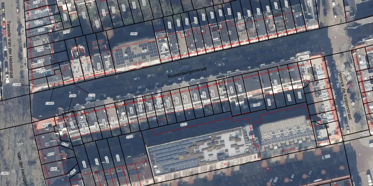 Rustenburgerstraat 297-2 is gelegen op kadastraal perceel ASD18V1643. Deze kadastrale aanduiding is uniek en wordt gebruikt door het Kadaster om eigendomsrechten en andere zakelijke rechten vast te leggen. Het perceel maakt onderdeel uit van de kadastrale gemeente Amsterdam.