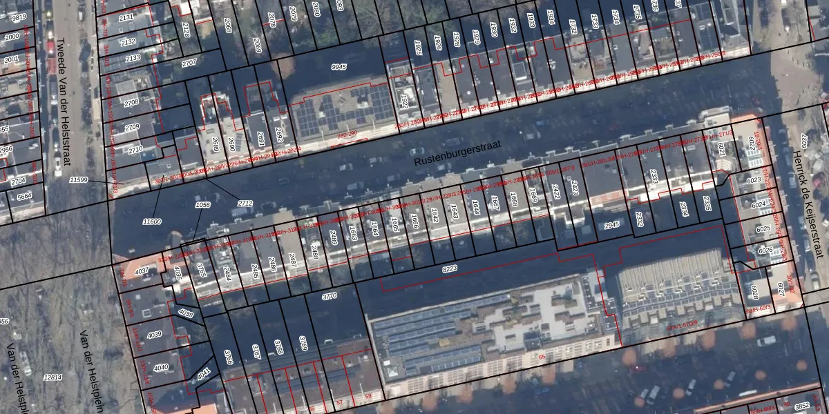 Het perceel waarop Rustenburgerstraat 301-2 staat heeft een oppervlakte van 90 m². Dit is een klein perceel. De perceeloppervlakte wordt geregistreerd door het Kadaster. Gedetailleerde informatie over de maten van dit perceel kunt u vinden in het rapport Kadastrale kaart met maatvoering van Rustenburgerstraat 301-2.
