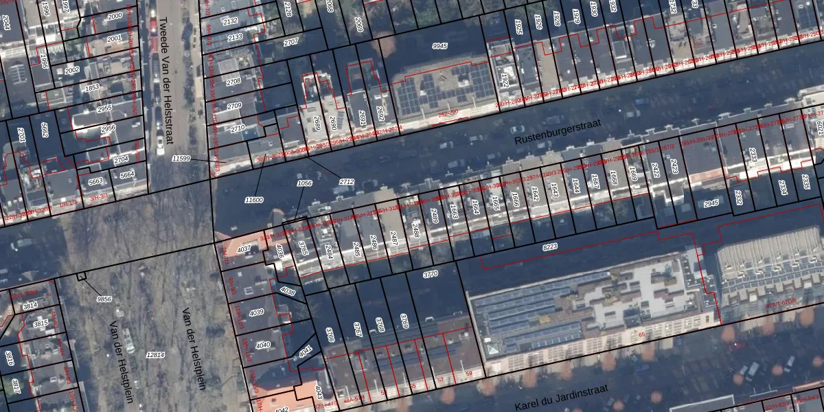 Het perceel waarop Rustenburgerstraat 311-H staat heeft een oppervlakte van 97 m². Dit is een klein perceel. De perceeloppervlakte wordt geregistreerd door het Kadaster. Gedetailleerde informatie over de maten van dit perceel kunt u vinden in het rapport Kadastrale kaart met maatvoering van Rustenburgerstraat 311-H.
