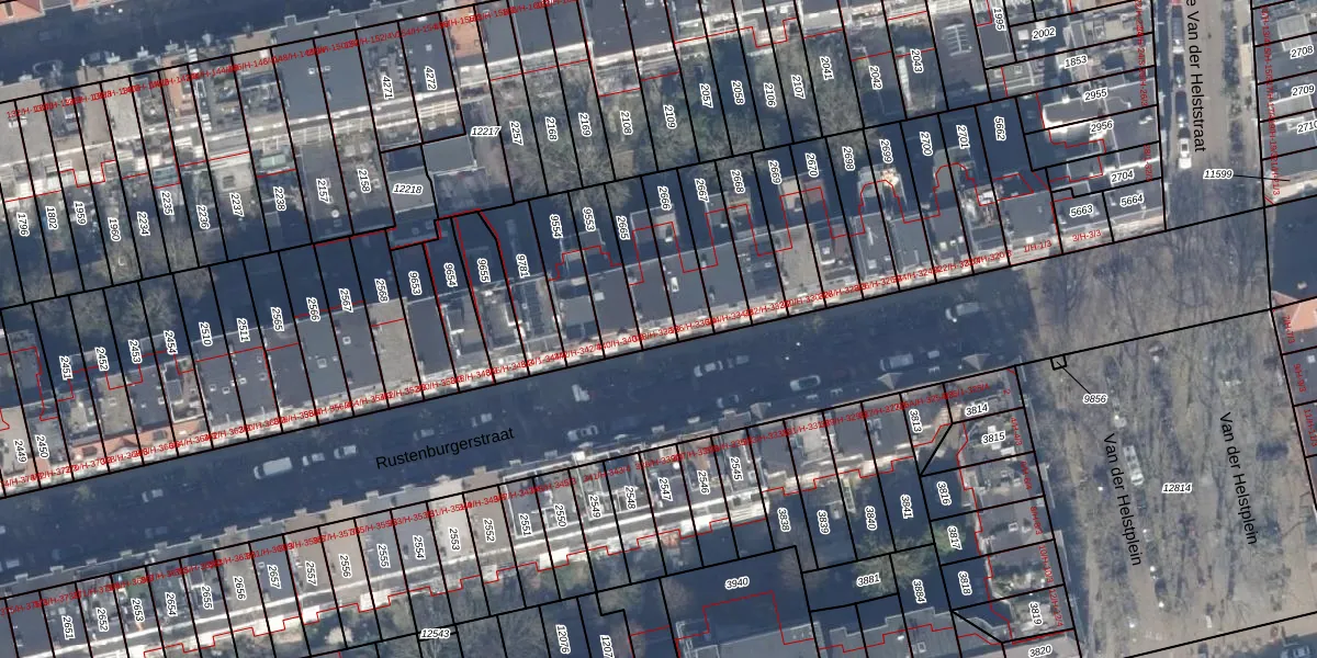 Rustenburgerstraat 338-1 is gelegen op kadastraal perceel ASD18V2665. Deze kadastrale aanduiding is uniek en wordt gebruikt door het Kadaster om eigendomsrechten en andere zakelijke rechten vast te leggen. Het perceel maakt onderdeel uit van de kadastrale gemeente Amsterdam.