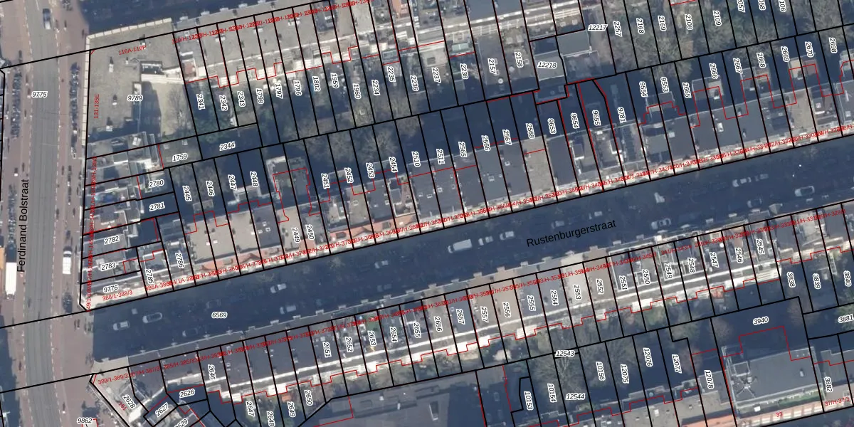 Rustenburgerstraat 362-4 is gelegen op kadastraal perceel ASD18V2510. Deze kadastrale aanduiding is uniek en wordt gebruikt door het Kadaster om eigendomsrechten en andere zakelijke rechten vast te leggen. Het perceel maakt onderdeel uit van de kadastrale gemeente Amsterdam.