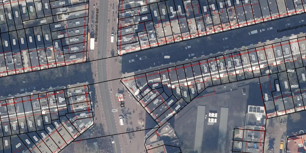 Rustenburgerstraat 385-2 is gelegen op kadastraal perceel ASD18V2626. Deze kadastrale aanduiding is uniek en wordt gebruikt door het Kadaster om eigendomsrechten en andere zakelijke rechten vast te leggen. Het perceel maakt onderdeel uit van de kadastrale gemeente Amsterdam.