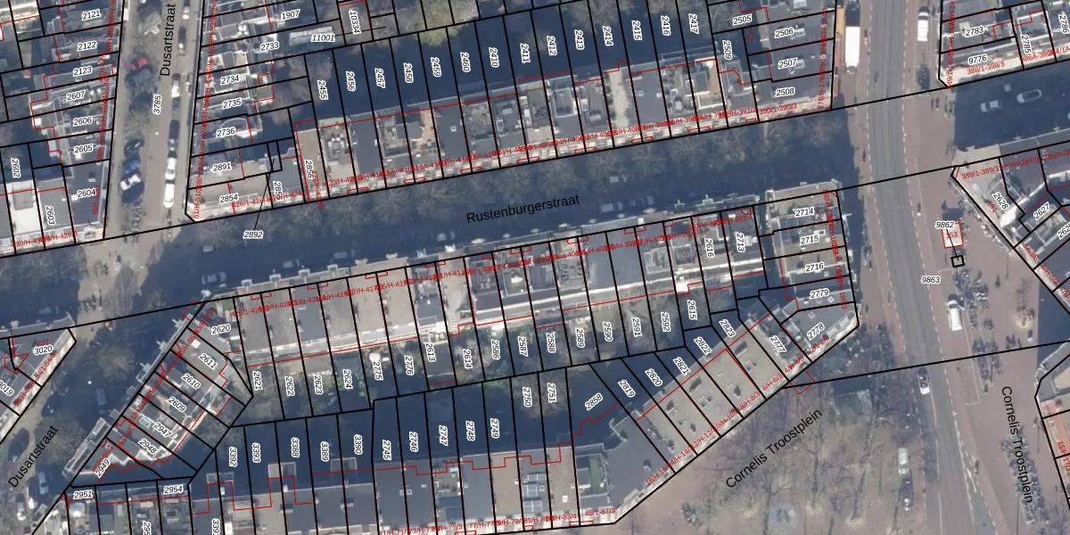 Het perceel waarop Rustenburgerstraat 405-4V staat heeft een oppervlakte van 130 m². Dit is een middelgroot perceel. De perceeloppervlakte wordt geregistreerd door het Kadaster. Gedetailleerde informatie over de maten van dit perceel kunt u vinden in het rapport Kadastrale kaart met maatvoering van Rustenburgerstraat 405-4V.