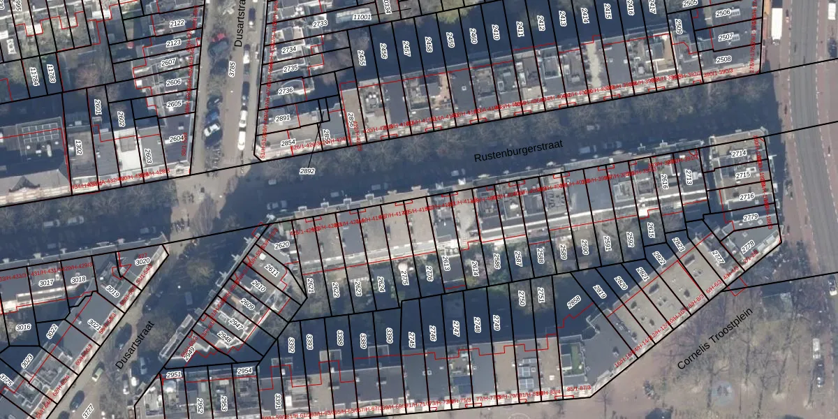Het perceel waarop Rustenburgerstraat 415-1 staat heeft een oppervlakte van 138 m². Dit is een middelgroot perceel. De perceeloppervlakte wordt geregistreerd door het Kadaster. Gedetailleerde informatie over de maten van dit perceel kunt u vinden in het rapport Kadastrale kaart met maatvoering van Rustenburgerstraat 415-1.