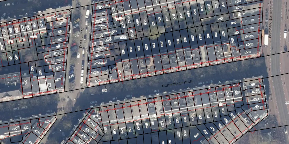Rustenburgerstraat 416-2 is gelegen op kadastraal perceel ASD18V2457. Deze kadastrale aanduiding is uniek en wordt gebruikt door het Kadaster om eigendomsrechten en andere zakelijke rechten vast te leggen. Het perceel maakt onderdeel uit van de kadastrale gemeente Amsterdam.