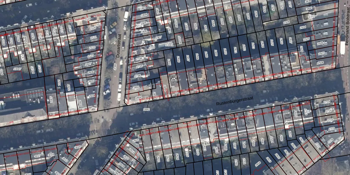 Rustenburgerstraat 420-3 is gelegen op kadastraal perceel ASD18V2455. Deze kadastrale aanduiding is uniek en wordt gebruikt door het Kadaster om eigendomsrechten en andere zakelijke rechten vast te leggen. Het perceel maakt onderdeel uit van de kadastrale gemeente Amsterdam.