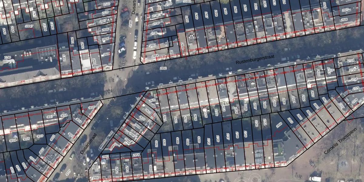 Het perceel waarop Rustenburgerstraat 421-4 staat heeft een oppervlakte van 135 m². Dit is een middelgroot perceel. De perceeloppervlakte wordt geregistreerd door het Kadaster. Gedetailleerde informatie over de maten van dit perceel kunt u vinden in het rapport Kadastrale kaart met maatvoering van Rustenburgerstraat 421-4.