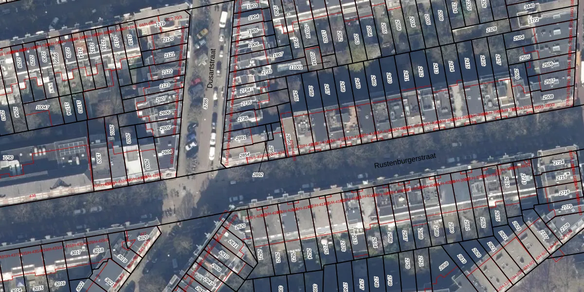 Rustenburgerstraat 422-2 is gelegen op kadastraal perceel ASD18V2856. Deze kadastrale aanduiding is uniek en wordt gebruikt door het Kadaster om eigendomsrechten en andere zakelijke rechten vast te leggen. Het perceel maakt onderdeel uit van de kadastrale gemeente Amsterdam.