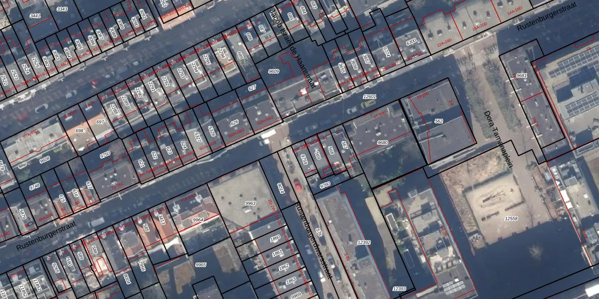 Het perceel waarop Rustenburgerstraat 43-H staat heeft een oppervlakte van 58 m². Dit is een klein perceel. De perceeloppervlakte wordt geregistreerd door het Kadaster. Gedetailleerde informatie over de maten van dit perceel kunt u vinden in het rapport Kadastrale kaart met maatvoering van Rustenburgerstraat 43-H.
