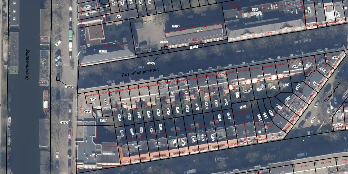 Het perceel waarop Rustenburgerstraat 453-4 staat heeft een oppervlakte van 127 m². Dit is een middelgroot perceel. De perceeloppervlakte wordt geregistreerd door het Kadaster. Gedetailleerde informatie over de maten van dit perceel kunt u vinden in het rapport Kadastrale kaart met maatvoering van Rustenburgerstraat 453-4.