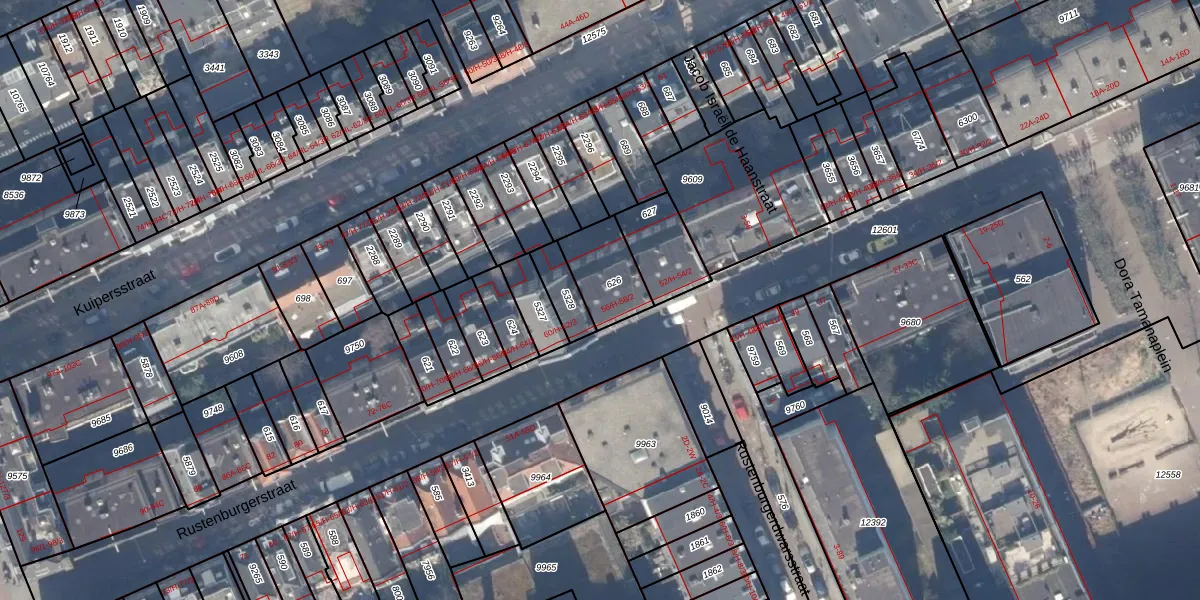 Het perceel waarop het adres ligt is ASD18-V-626. De afkorting 'ASD18' staat voor kadastrale gemeente Amsterdam. Het perceel is kleiner dan gemiddeld in Amsterdam. Het perceel is 168 m² groot, terwijl het gemiddelde ligt op 559,23 m². De grootste perceeloppervlakte in de kadastrale gemeente is 12,5 ha. De kleinste oppervlakte bedraagt 0 m². Op het perceel zijn 6 adressen aanwezig. De huidige grenzen van het perceel zijn digitaal in de Basisregistratie Kadaster (BRK) geregistreerd op 17-10-2006.
