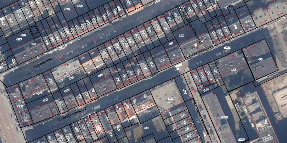 Het perceel waarop Rustenburgerstraat 62-3 staat heeft een oppervlakte van 89 m². Dit is een klein perceel. De perceeloppervlakte wordt geregistreerd door het Kadaster. Gedetailleerde informatie over de maten van dit perceel kunt u vinden in het rapport Kadastrale kaart met maatvoering van Rustenburgerstraat 62-3.