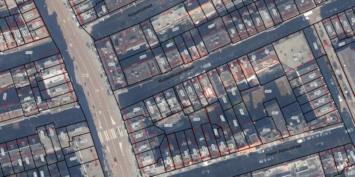 Rustenburgerstraat 71 is gelegen op kadastraal perceel ASD18V9265. Deze kadastrale aanduiding is uniek en wordt gebruikt door het Kadaster om eigendomsrechten en andere zakelijke rechten vast te leggen. Het perceel maakt onderdeel uit van de kadastrale gemeente Amsterdam.