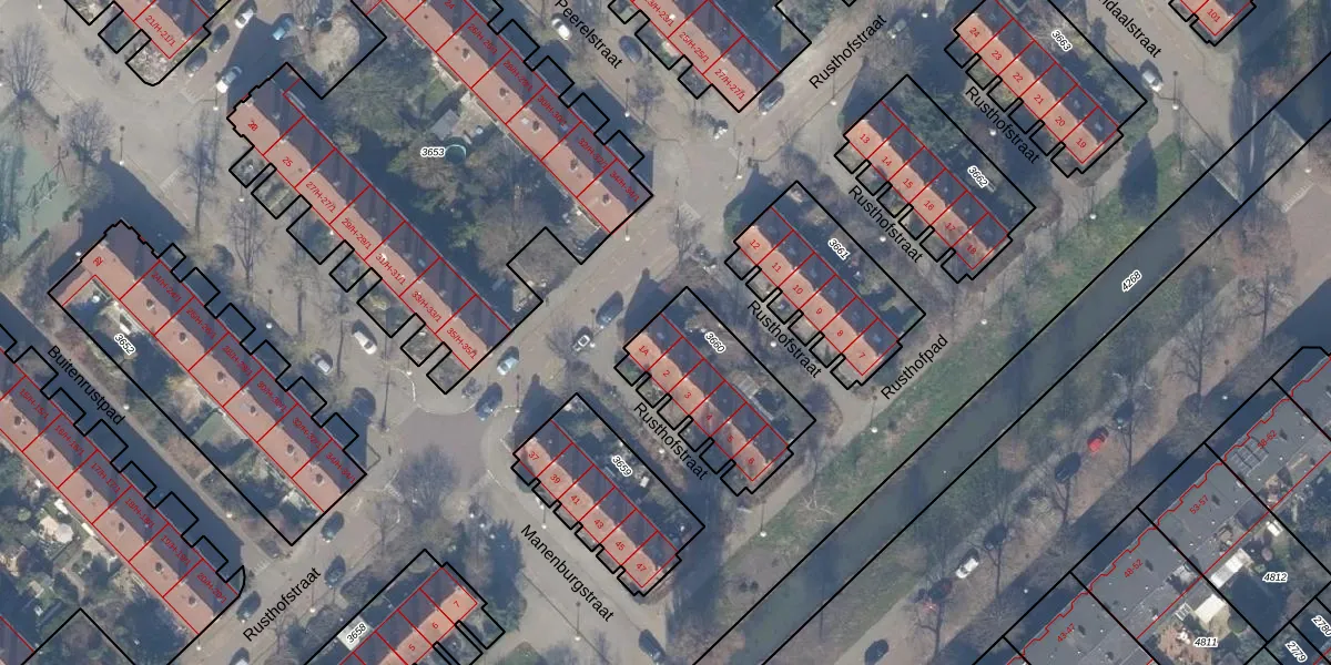 Rusthofstraat 1-A is gelegen op kadastraal perceel WTG02A3660. Deze kadastrale aanduiding is uniek en wordt gebruikt door het Kadaster om eigendomsrechten en andere zakelijke rechten vast te leggen. Het perceel maakt onderdeel uit van de kadastrale gemeente Watergraafsmeer.
