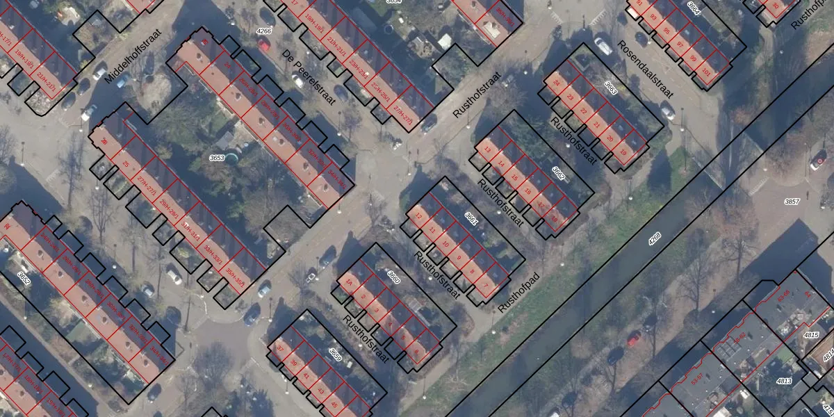 Rusthofstraat 12 is gelegen op kadastraal perceel WTG02A3661. Deze kadastrale aanduiding is uniek en wordt gebruikt door het Kadaster om eigendomsrechten en andere zakelijke rechten vast te leggen. Het perceel maakt onderdeel uit van de kadastrale gemeente Watergraafsmeer.