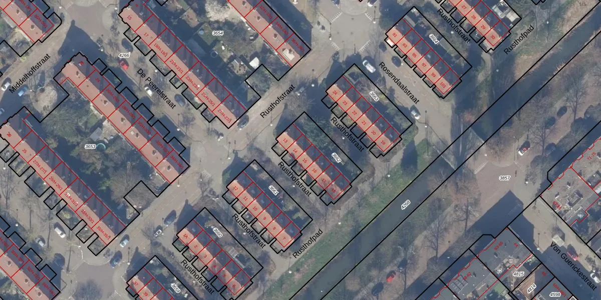 Rusthofstraat 14 is gelegen op kadastraal perceel WTG02A3662. Deze kadastrale aanduiding is uniek en wordt gebruikt door het Kadaster om eigendomsrechten en andere zakelijke rechten vast te leggen. Het perceel maakt onderdeel uit van de kadastrale gemeente Watergraafsmeer.