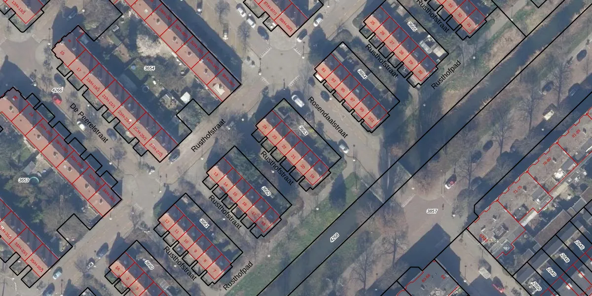 Rusthofstraat 21 is gelegen op kadastraal perceel WTG02A3663. Deze kadastrale aanduiding is uniek en wordt gebruikt door het Kadaster om eigendomsrechten en andere zakelijke rechten vast te leggen. Het perceel maakt onderdeel uit van de kadastrale gemeente Watergraafsmeer.