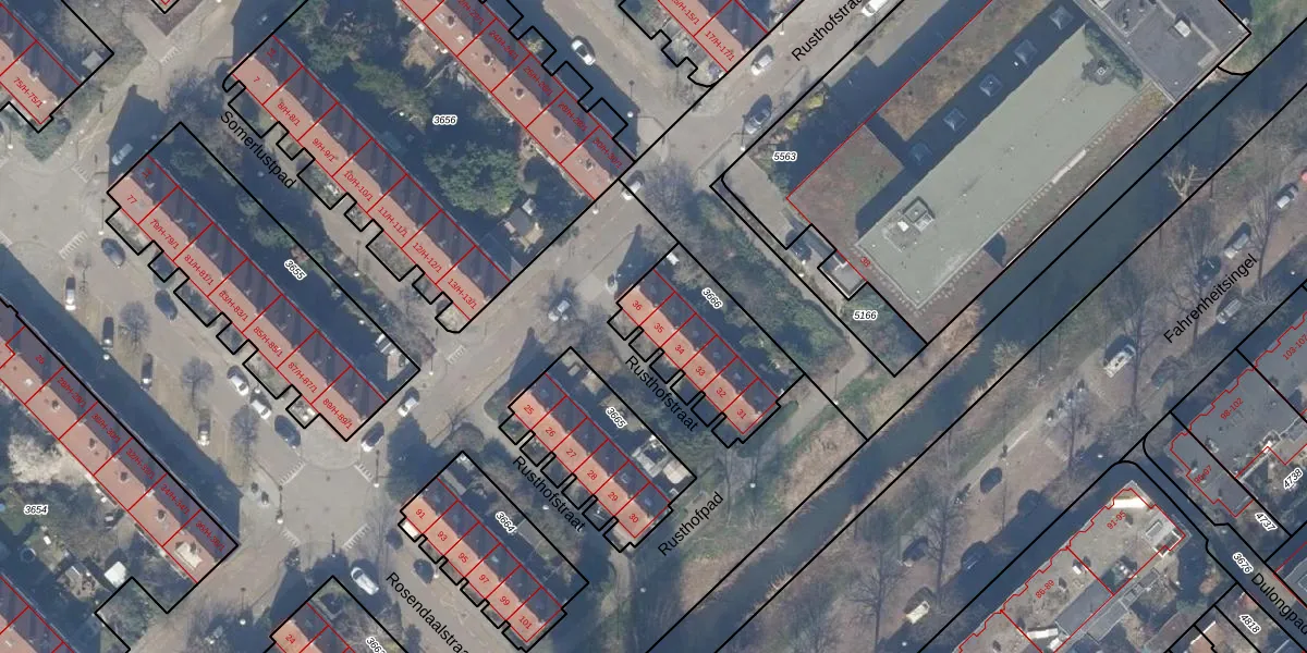 Rusthofstraat 35 is gelegen op kadastraal perceel WTG02A3666. Deze kadastrale aanduiding is uniek en wordt gebruikt door het Kadaster om eigendomsrechten en andere zakelijke rechten vast te leggen. Het perceel maakt onderdeel uit van de kadastrale gemeente Watergraafsmeer.
