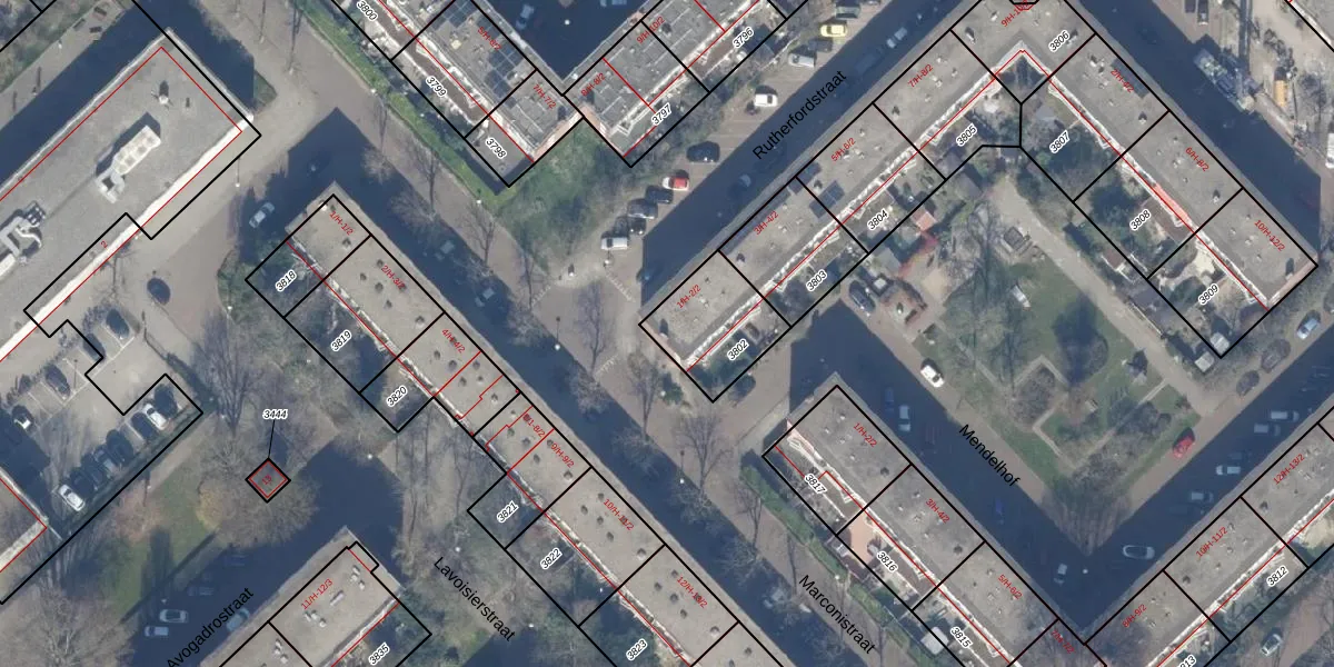 Rutherfordstraat 1-1 is gelegen op kadastraal perceel WTG02B3802. Deze kadastrale aanduiding is uniek en wordt gebruikt door het Kadaster om eigendomsrechten en andere zakelijke rechten vast te leggen. Het perceel maakt onderdeel uit van de kadastrale gemeente Watergraafsmeer.