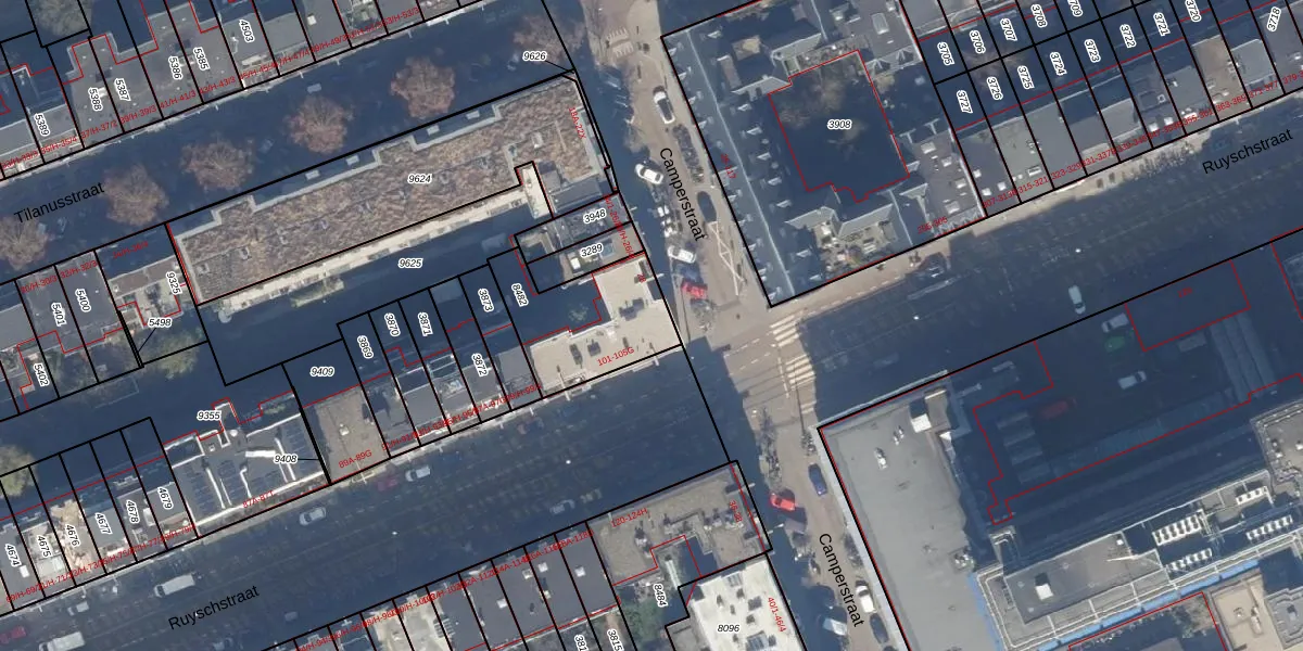 Het perceel waarop Ruyschstraat 105-G staat heeft een oppervlakte van 398 m². Dit is een groot perceel. De perceeloppervlakte wordt geregistreerd door het Kadaster. Gedetailleerde informatie over de maten van dit perceel kunt u vinden in het rapport Kadastrale kaart met maatvoering van Ruyschstraat 105-G.