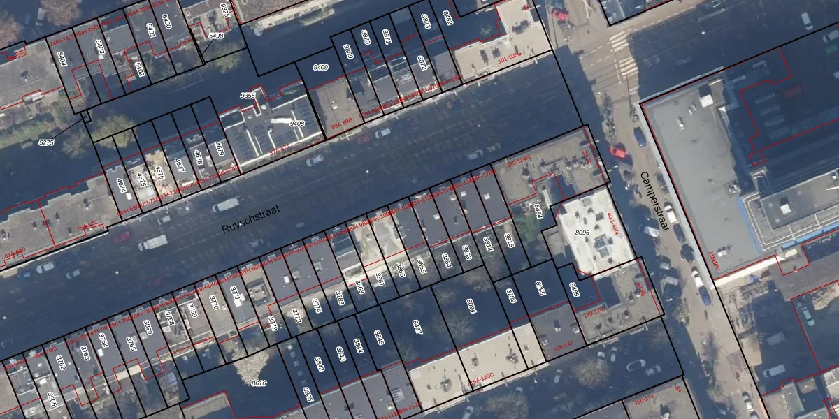 Het perceel waarop Ruyschstraat 112-B staat heeft een oppervlakte van 119 m². Dit is een middelgroot perceel. De perceeloppervlakte wordt geregistreerd door het Kadaster. Gedetailleerde informatie over de maten van dit perceel kunt u vinden in het rapport Kadastrale kaart met maatvoering van Ruyschstraat 112-B.