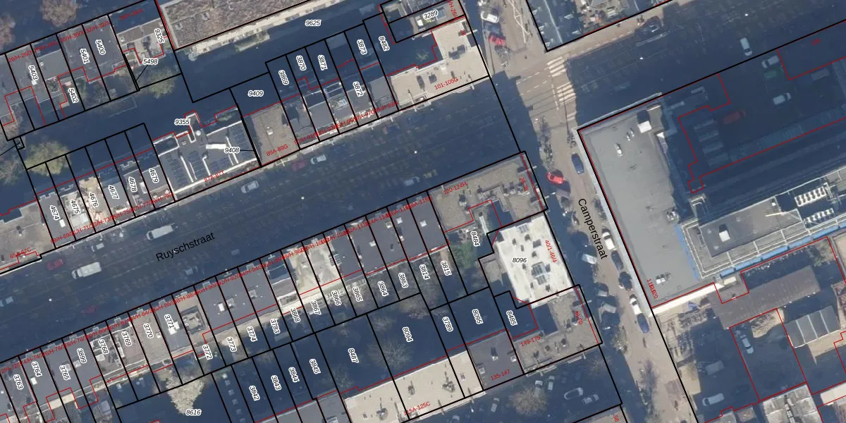 Het perceel waarop Ruyschstraat 118-C staat heeft een oppervlakte van 135 m². Dit is een middelgroot perceel. De perceeloppervlakte wordt geregistreerd door het Kadaster. Gedetailleerde informatie over de maten van dit perceel kunt u vinden in het rapport Kadastrale kaart met maatvoering van Ruyschstraat 118-C.