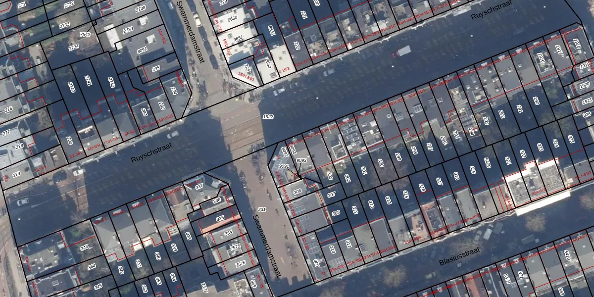 Het perceel waarop Ruyschstraat 18-H staat heeft een oppervlakte van 88 m². Dit is een klein perceel. De perceeloppervlakte wordt geregistreerd door het Kadaster. Gedetailleerde informatie over de maten van dit perceel kunt u vinden in het rapport Kadastrale kaart met maatvoering van Ruyschstraat 18-H.