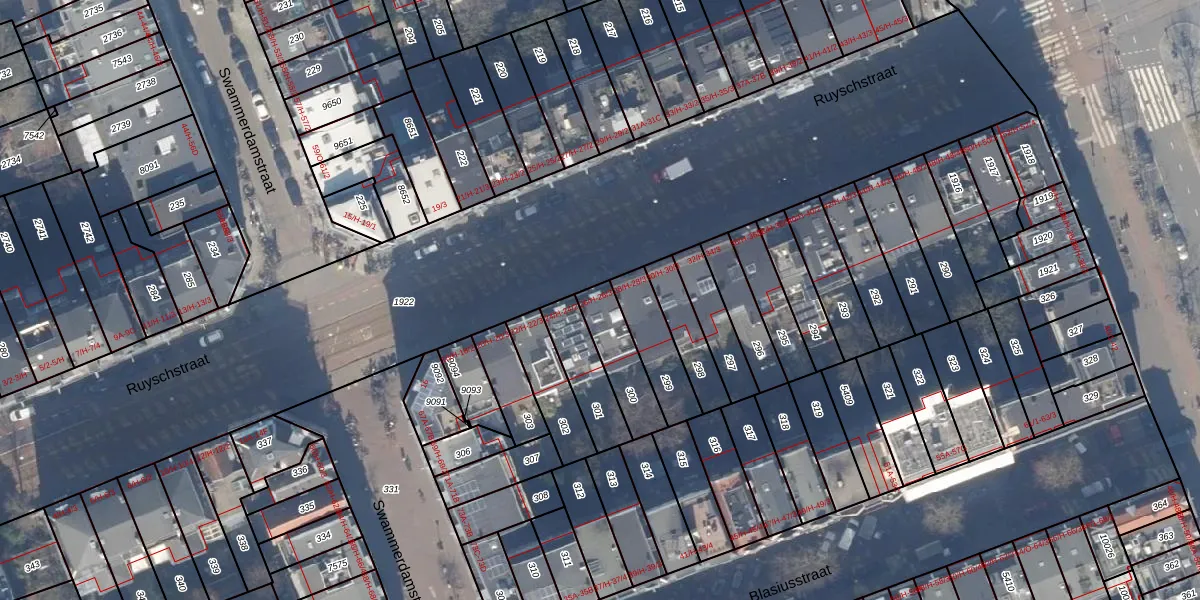 Het perceel waarop het adres ligt is ASD15-S-300. De afkorting 'ASD15' staat voor kadastrale gemeente Amsterdam. De gemiddelde perceelgrootte in Amsterdam is 537,06 m². Dit perceel is kleiner: de perceeloppervlakte bedraagt 164 m². De grootste perceeloppervlakte in de kadastrale gemeente is 14,5 ha. De kleinste oppervlakte bedraagt 0 m². Er zijn 3 adressen aanwezig op het perceel. De laatste wijziging in het de Basisregistratie Kadaster (BRK) was op 30-11-2006.