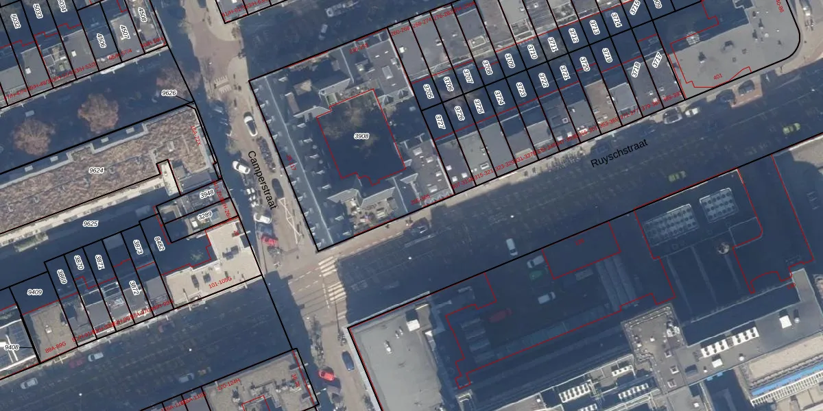 Ruyschstraat 297 is gelegen op kadastraal perceel ASD15S3908. Deze kadastrale aanduiding is uniek en wordt gebruikt door het Kadaster om eigendomsrechten en andere zakelijke rechten vast te leggen. Het perceel maakt onderdeel uit van de kadastrale gemeente Amsterdam.
