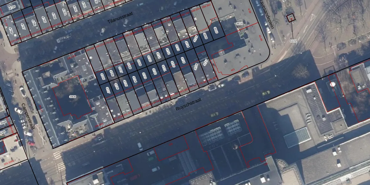 Het perceel waarop Ruyschstraat 363-E staat heeft een oppervlakte van 116 m². Dit is een middelgroot perceel. De perceeloppervlakte wordt geregistreerd door het Kadaster. Gedetailleerde informatie over de maten van dit perceel kunt u vinden in het rapport Kadastrale kaart met maatvoering van Ruyschstraat 363-E.