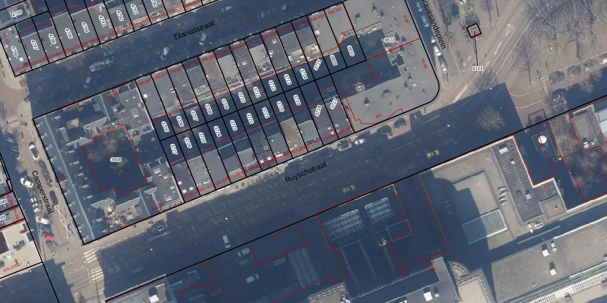 Het perceel waarop Ruyschstraat 363-G staat heeft een oppervlakte van 116 m². Dit is een middelgroot perceel. De perceeloppervlakte wordt geregistreerd door het Kadaster. Gedetailleerde informatie over de maten van dit perceel kunt u vinden in het rapport Kadastrale kaart met maatvoering van Ruyschstraat 363-G.
