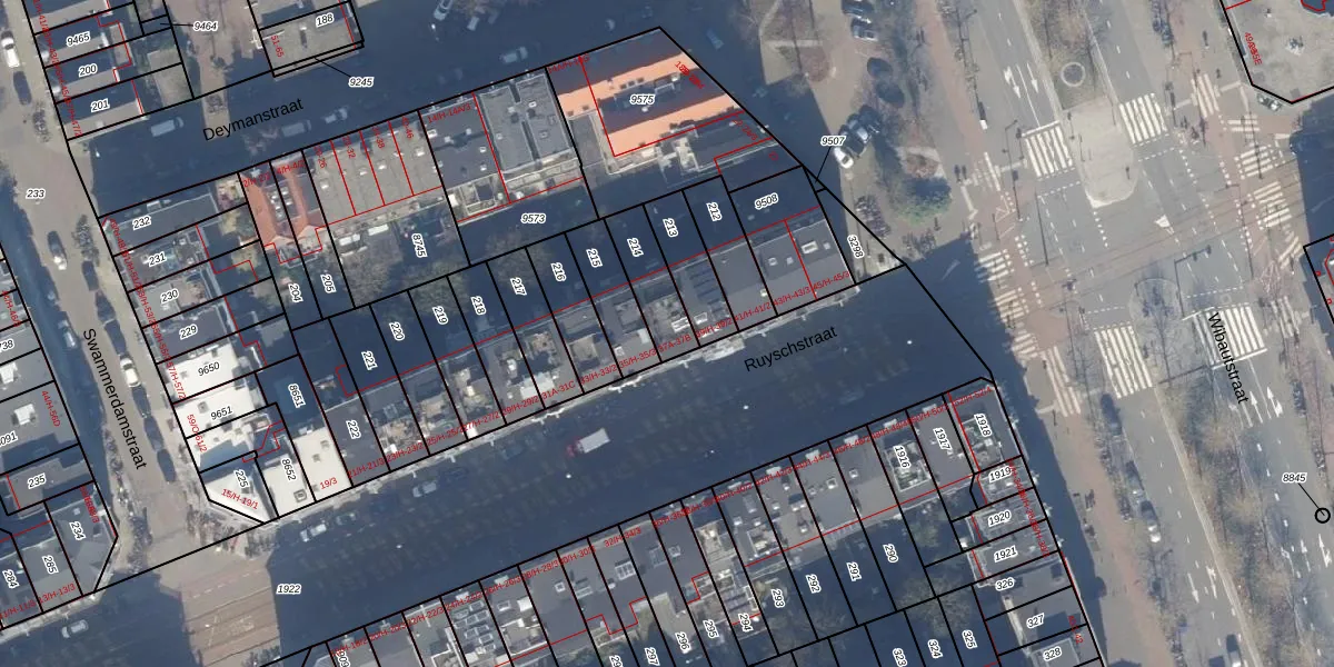 Het perceel waarop Ruyschstraat 37-B staat heeft een oppervlakte van 149 m². Dit is een middelgroot perceel. De perceeloppervlakte wordt geregistreerd door het Kadaster. Gedetailleerde informatie over de maten van dit perceel kunt u vinden in het rapport Kadastrale kaart met maatvoering van Ruyschstraat 37-B.