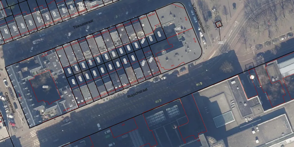 Het perceel waarop Ruyschstraat 379 staat heeft een oppervlakte van 115 m². Dit is een middelgroot perceel. De perceeloppervlakte wordt geregistreerd door het Kadaster. Gedetailleerde informatie over de maten van dit perceel kunt u vinden in het rapport Kadastrale kaart met maatvoering van Ruyschstraat 379.