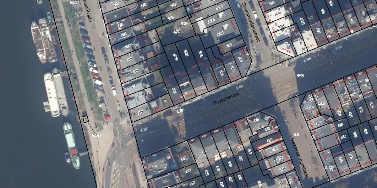 Het perceel waarop Ruyschstraat 5-3 staat heeft een oppervlakte van 202 m². Dit is een middelgroot perceel. De perceeloppervlakte wordt geregistreerd door het Kadaster. Gedetailleerde informatie over de maten van dit perceel kunt u vinden in het rapport Kadastrale kaart met maatvoering van Ruyschstraat 5-3.