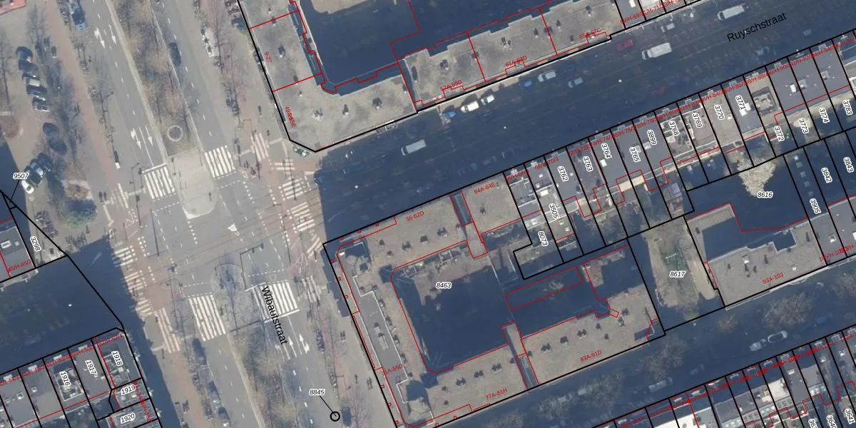 Het perceel waarop het adres ligt is ASD15-S-8463. De afkorting 'ASD15' staat voor kadastrale gemeente Amsterdam. Het perceel is met 2738 m² relatief groot. Het gemiddelde ligt in de kadastrale gemeente Amsterdam op 537,06 m². Het grootste perceel in de kadastrale gemeente is 14,5 ha. Het kleinste perceel heeft een oppervlakte van 0 m². Op het perceel liggen in totaal 88 adressen. In de Basisregistratie Kadaster (BRK) werden de grenzen van het perceel geregistreerd op 30-11-2006.