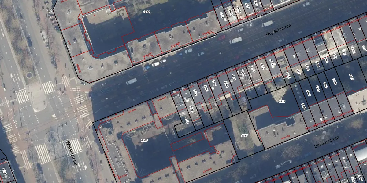Het perceel waarop Ruyschstraat 68-H staat heeft een oppervlakte van 126 m². Dit is een middelgroot perceel. De perceeloppervlakte wordt geregistreerd door het Kadaster. Gedetailleerde informatie over de maten van dit perceel kunt u vinden in het rapport Kadastrale kaart met maatvoering van Ruyschstraat 68-H.