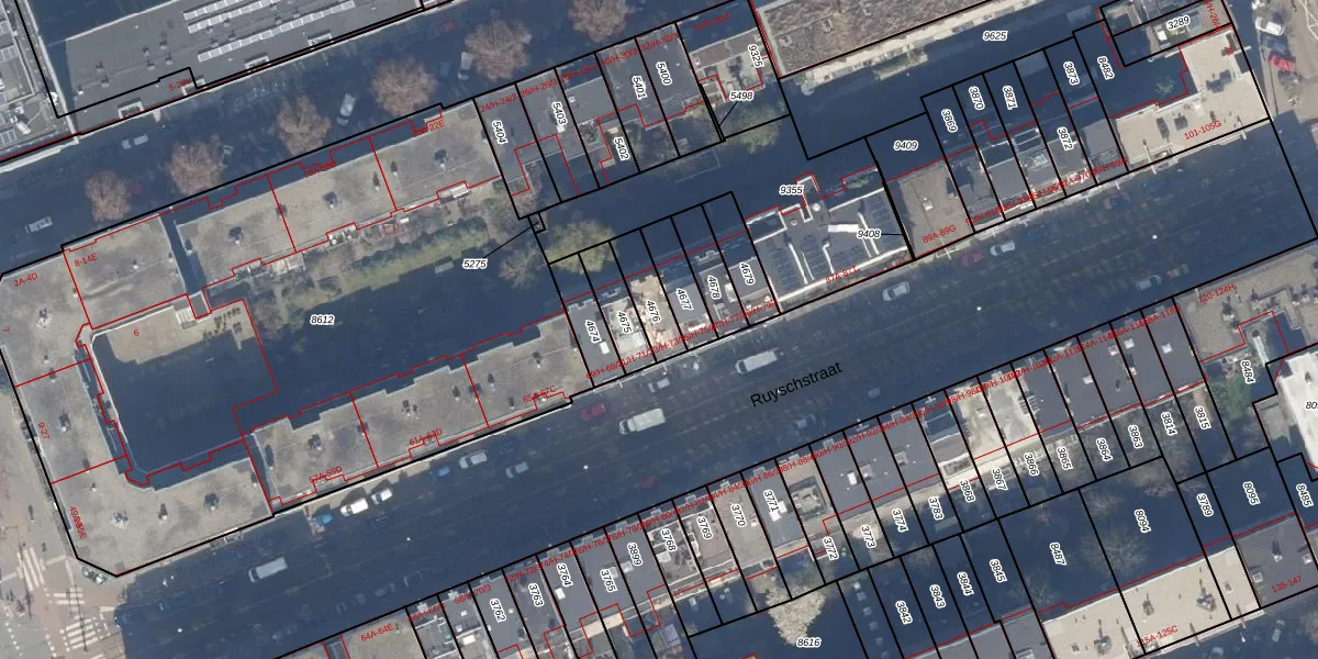 Het perceel waarop Ruyschstraat 73-1 staat heeft een oppervlakte van 99 m². Dit is een klein perceel. De perceeloppervlakte wordt geregistreerd door het Kadaster. Gedetailleerde informatie over de maten van dit perceel kunt u vinden in het rapport Kadastrale kaart met maatvoering van Ruyschstraat 73-1.