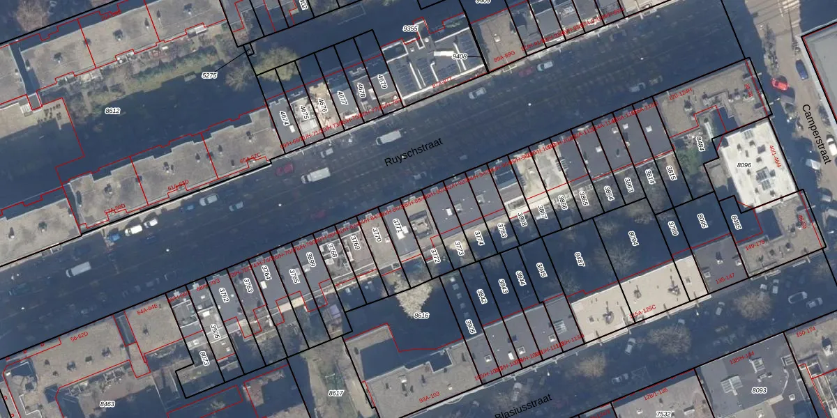 Het perceel waarop Ruyschstraat 88-2 staat heeft een oppervlakte van 117 m². Dit is een middelgroot perceel. De perceeloppervlakte wordt geregistreerd door het Kadaster. Gedetailleerde informatie over de maten van dit perceel kunt u vinden in het rapport Kadastrale kaart met maatvoering van Ruyschstraat 88-2.