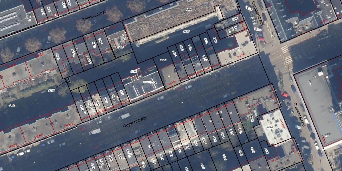 Het perceel waarop Ruyschstraat 89-B staat heeft een oppervlakte van 195 m². Dit is een middelgroot perceel. De perceeloppervlakte wordt geregistreerd door het Kadaster. Gedetailleerde informatie over de maten van dit perceel kunt u vinden in het rapport Kadastrale kaart met maatvoering van Ruyschstraat 89-B.