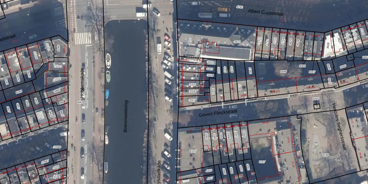 Het adres is gelegen op perceel 3326 in de sectie R en de kadastrale gemeente Amsterdam. De kadastrale aanduiding is aldus ASD14-R-3326. Het perceel is 68 m² groot. Dat is kleiner dan de gemiddelde perceeloppervlakte in Amsterdam, dat op 354,38 m² ligt. Het grootste perceel in de kadastrale gemeente is 9,9 ha. Het kleinste perceel heeft een oppervlakte van 0 m². Op het perceel zijn 5 adressen aanwezig. In de Basisregistratie Kadaster (BRK) werden de grenzen van het perceel geregistreerd op 10-10-2006.