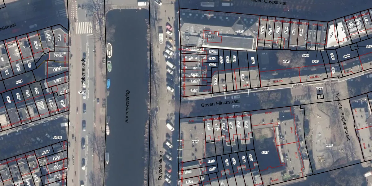 Het adres is gelegen op perceel 3327 in de sectie R en de kadastrale gemeente Amsterdam. De kadastrale aanduiding is aldus ASD14-R-3327. Het perceel is 88 m² groot. Dat is kleiner dan de gemiddelde perceeloppervlakte in Amsterdam, dat op 354,47 m² ligt. Het kleinste perceel in de kadastrale gemeente is 0 m² groot. De grootste perceeloppervlakte is 9,9 ha. Op het perceel liggen in totaal 6 adressen. De huidige grenzen van het perceel zijn digitaal in de Basisregistratie Kadaster (BRK) geregistreerd op 10-10-2006.