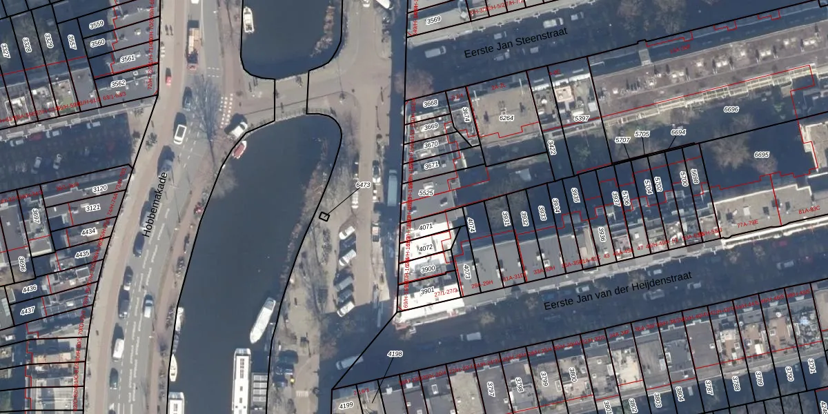 Het adres is gelegen op perceel 5525 in de sectie R en de kadastrale gemeente Amsterdam. De kadastrale aanduiding is aldus ASD14-R-5525. Het perceel is 303 m² groot. Dat is kleiner dan de gemiddelde perceeloppervlakte in Amsterdam, dat op 354,38 m² ligt. De grootste perceeloppervlakte in de kadastrale gemeente is 9,9 ha. De kleinste oppervlakte bedraagt 0 m². Er zijn 8 adressen aanwezig op het perceel. De laatste wijziging in het de Basisregistratie Kadaster (BRK) was op 06-10-2006.