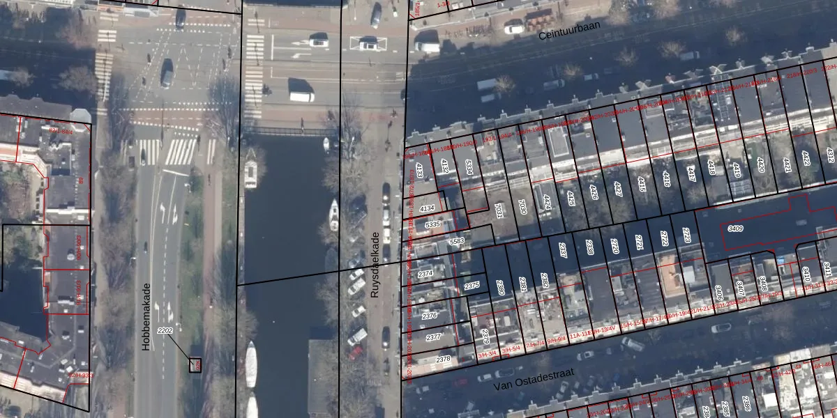Het adres is gelegen op perceel 4134 in de sectie R en de kadastrale gemeente Amsterdam. De kadastrale aanduiding is aldus ASD14-R-4134. Het perceel is 54 m² groot. Dat is kleiner dan de gemiddelde perceeloppervlakte in Amsterdam, dat op 354,38 m² ligt. De grootste perceeloppervlakte in de kadastrale gemeente is 9,9 ha. De kleinste oppervlakte bedraagt 0 m². Op het perceel liggen in totaal 4 adressen. In de Basisregistratie Kadaster (BRK) werden de grenzen van het perceel geregistreerd op 10-10-2006.