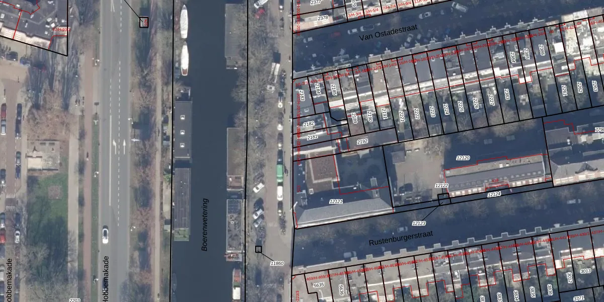Het adres is gelegen op perceel 2192 in de sectie V en de kadastrale gemeente Amsterdam. De kadastrale aanduiding is aldus ASD18-V-2192. Het perceel is 169 m² groot. Dat is kleiner dan de gemiddelde perceeloppervlakte in Amsterdam, dat op 558,8 m² ligt. Het grootste perceel in de kadastrale gemeente is 12,5 ha. Het kleinste perceel heeft een oppervlakte van 0 m². Er zijn 4 adressen aanwezig op het perceel. De laatste wijziging in het de Basisregistratie Kadaster (BRK) was op 07-05-2014.